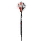 Ein Dart der absoluten Spitzenklasse. Der zylinderförmige Barrel besteht zu 90% aus Tungsten und erhält durch eine PVD-Beschichtung seine auffällige schwarze Färbung und angenehme Haptik. Der Barrel verfügt über einen gleichmäßigen Tripleringgrip, der im mittleren Bereich durch eine einfache Ringstruktur unterbrochen wird. Die typischen beiden roten Karellaringe am Ende des Barrels runden das ansprechende Design des Barrels ab. Komplettiert wird der Dart durch die extra entwickelten Karella XT Shafts sowie hochwertige und optisch ansprechende Karella Profi Flights. Der Softdart ist in den Gewichten 18g und 20g erhältlich.