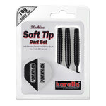 Typisch Karella! Die neuen Softdart Modelle „BlackLine“ verfügen über ein unschlagbares Preis/Leistungsverhältnis. Die auffallend attraktiven Barrels bestehen aus echtem Messing mit einer schwarzen Beschichtung. Die schlanken Barrels mit ihren präzisen Rillungen kombiniert mit Riffelungen liegen sehr gut in der Hand. Und verfügen über sehr gute Flugeigenschften. (Made in England). Ausgestattet mit passenden schwarzen Nylon Shafts und den beliebten Pentathlon Flys in schwarz / weiß. Verpackt sind die Karella BlackLine in einer eleganten handlichen Blisterverpackung.