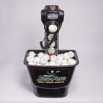 Der integrierte Balleimer fasst ca. 90 Bälle. Bei Einsatz im integrierten Versa-Ballfangnetz ist eine Ballrückführung und längeres Spiel möglich, mit manueller Auswurfrichtung in drei Zonen.