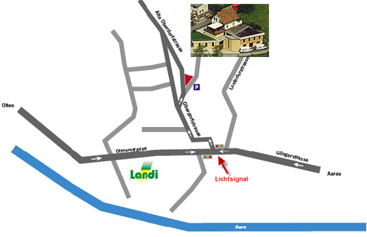 Customers coming from Olten should take the turnoff to the left in front of the Frohsinn restaurant in the village center.