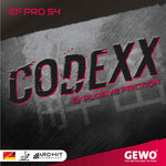 The GEWO Codexx EF Pro 54 (Explosive Friction) combines a harder and more compact sponge than the Codexx EL Pro 52 with a slightly sticky upper rubber to provide the uncompromising offensive player with the perfect weapon for absolute power table tennis. The EF Pro 54 stands for hard-hitting power spins and the ultimate drive forward. A rubber for absolute offensive players with a high training workload. Not suitable for players who do not yet have a stable and fully developed technique. Convince yourself and test the full hardness without losing control or rotation values.