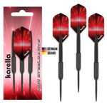 La fabrication précise avec un fût noir anodisé antidérapant avec une zone de préhension structurée, un manche noir et l'ailette originale Karella Mini Flight garantissent une prise en main sûre malgré leur taille miniature. La pointe en acier durable garantit une bonne adhérence au tableau.
