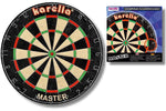 Das original Karella „Master-Dartboard“ besteht aus Millionen eng gepresster hochwertiger Sisalborsten. Diese Sisalfasern haben den Vorteil, dass sie sich nach dem Herausziehen des Dartpfeiles wieder zusammenschließen. Nationale sowie internationale Meisterschaften werden ausschließlich auf Sisal-Dartboards ausgetragen. Dieses Herstellungsverfahren erlaubt auch die Verwendung von Softdarts (mit Kunststoffspitzen). Das Besondere an dem Karella-Dartboard ist die Verarbeitung mit einem sogenannten Diamant- bzw. Pyramid-Drahtsystem. Die nach oben spitz zulaufende Drahteinteilung verhindert die „Abpraller“, die entstehen würden, wenn der Dartpfeil direkt auf die Drahtmitte auftritt. Die Scheibendicke (4 cm) sowie der Durchmesser (45 cm) entsprechen den Turnier-Voraussetzungen. Gewicht: ca. 5 kg. Lieferung inklusive Aufhängung und Spielregeln. Das Karella Wettkampfboard verfügt über ein ausgezeichnetes Preis-Leistungs-Verhältnis.